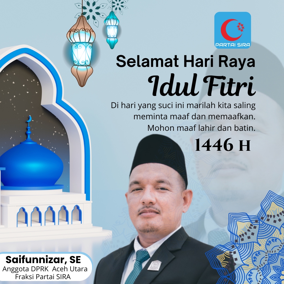 Saya, Saifunnizar, sebagai anggota Dewan Perwakilan Rakyat Kabupaten (DPRK) Aceh Utara dari Partai SIRA, mengucapkan terima kasih yang sebesar-besarnya kepada seluruh masyarakat yang telah memberikan kepercayaan kepada saya untuk menjadi wakil mereka di lembaga legislatif ini. Kepercayaan yang diberikan ini adalah tanggung jawab yang sangat besar, dan saya berkomitmen untuk menjalankan amanah ini dengan sebaik-baiknya.